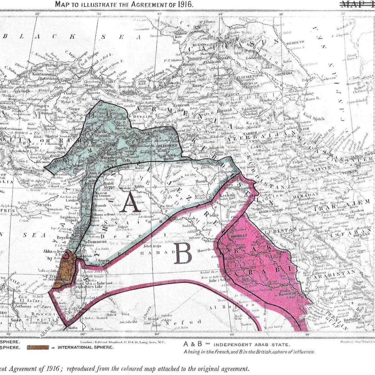 The study relates to the Sykes-Picot Agreement, as it was a gateway to dividing the middle east between the major power after the end of the world war 1.the United Kingdom and France agreed in 1916 to divide middle east, including Palestine, Syria, Lebanon and Iraq, after the collapse of the ottoman empire during World War 1.